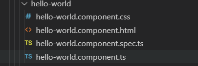 Angular automatically creates this folder with these files included once we run the command. This file is made up of an html file, a css file, a typescript file, and a test typescript file.